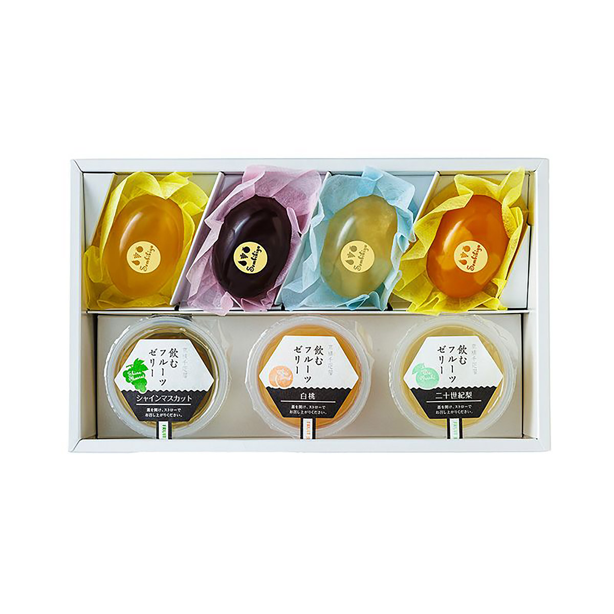 京橋千疋屋のロングセラー、香り豊かな果物の美味しさをそのまま閉じ込めた「フルーツゼリーGRACE「恵」」と純国産フルーツを喉越しなめらかに仕上げた「飲むフルーツゼリー」。同じフルーツゼリーとはいえ、それぞれ違った個性が楽しめるバラエティー豊かな詰合せをご用意いたしました。