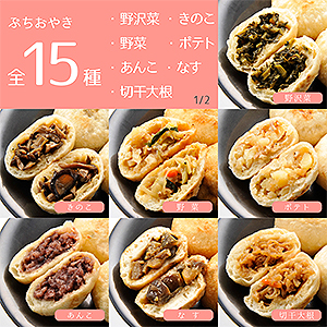 ◎ネット限定品おやきの半分サイズは見た目も可愛く、贈り物にもぴったりです。定番の9種類の具材(国産無添加)に、ぷちおやき限定の6食を加えた15種類の味が楽しめます。某大手ECモールで食品総合ランキング1位の実績もあり!