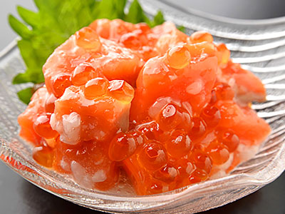刺身用の紅鮭をいくらと麹で旨味を引き上げました。