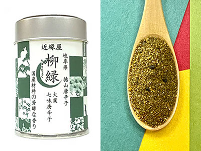 ゆずを贅沢に使用した七味唐辛子です。ゆずの甘く苦いフレッシュグリーンの濃厚な香りが特徴です。ゆず本来の香りを最大限引き出しています。天ぷら、鍋料理、お吸い物などの和食にはもちろん、レモンの代わりに唐揚げなどに合います。全国商工会連合会賞を受賞し、クルーズ船「飛鳥Ⅲ」のレストランにも採用されています。