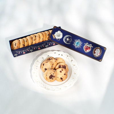 宝石箱のような深い青の缶には、チョコレートとバターの香りが広がるサブレショコラが詰まっています。