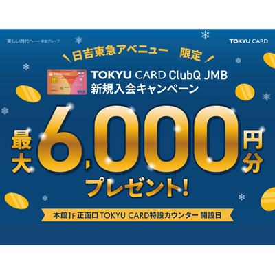 TOKYU CARD ClubQ JMB新規ご入会でもれなく東急グループ商品券3,000円分プレゼント!さらに