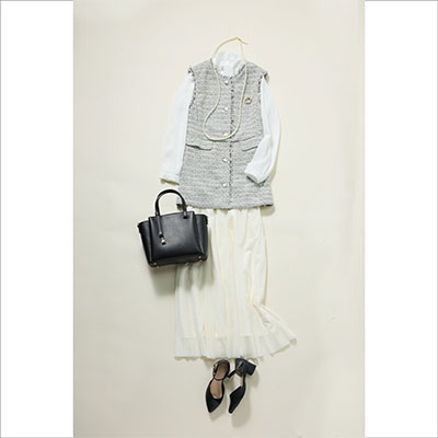 ジレなら女性らしく軽やかな印象に"きちんと感と洒落感"が叶います。