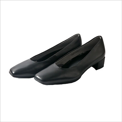 ルックスはパンプス、履き心地はスニーカー!本革で安定感のあるワンヒール、華奢見えするスクエアトゥ。