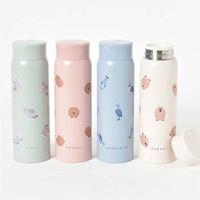 ゆるい表情でかわいらしい動物柄のステンレスボトル。