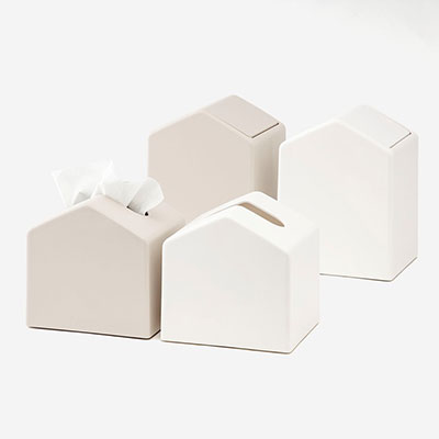 お家のようなかわいらしいティッシュケースとダストボックスです。