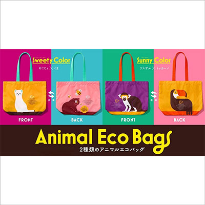 可愛らしい動物の絵と鮮やかな色合いのエコバッグです。新生活のお買い物にいかがでしょうか。