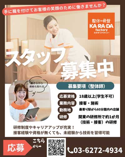 店舗業種:正社員整体スタッフ