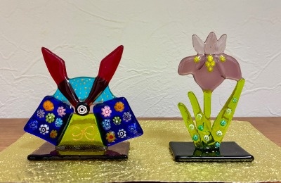 ミルフィオリ 五月飾り(ベネチアンガラス、兜:H8×W9cm、花菖蒲:H8.5×W5cm)