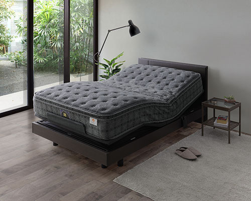 〈シーリー〉の寝心地はそのままに、電動リクライニングで充実したお家時間を。〈シーリー〉のアジャスタブルベッド セレクションはアジャスタブルベースとお好みの木製フレームを組み合わせてお使いいただけます。