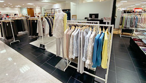 リバティプリントのオリジナル素材を使用したトップスブランド〈サヴォア〉とパンツブランド〈ランタナ〉のコンバインにより大人のコーディネイトを提案。