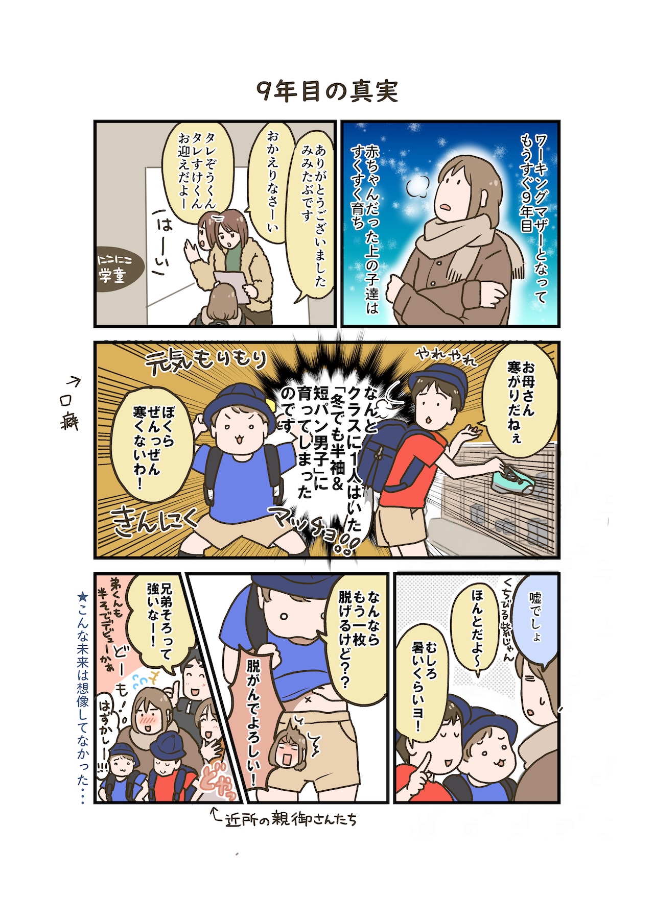 洗濯が終わり、乾燥機にかけられないものを外に干す。リビングに戻ると長男はゲームをしていて、長女と次女はいつのまにか操作を覚えた端末で動画サイトを観ている。ここでまた母の怒りを買うのもお決まり。