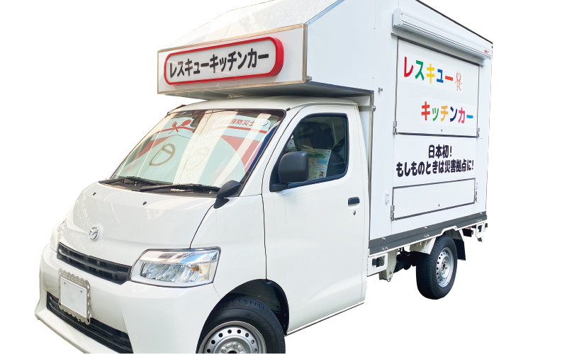 レスキューキッチンカーは、規格外の食材やフードロス食材を活用して調理・販売し(食材のレスキュー)、災害時には即座に温かい炊き出しを行う(地域のレスキュー)という2つの目的を持った、日本初の特殊なキッチンカーです。