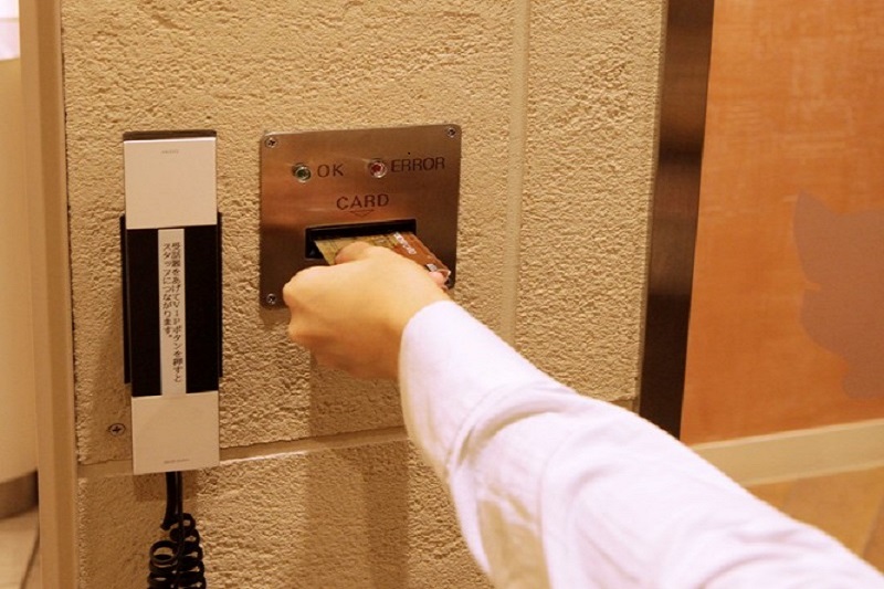 入り口でTOKYU CARD ClubQカードを挿入して入室します。