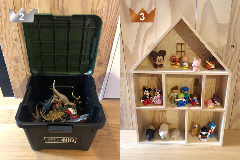 第1位 細かいパーツがある恐竜フィギュアやレゴ作品は見せる収納に!「手作り棚」