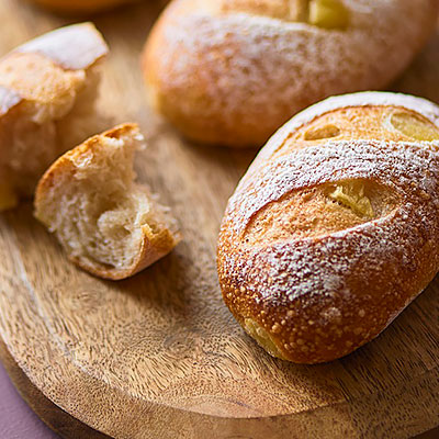 アンデルセンファームで収穫したりんご(シナノゴールド)をシロップ漬けにし、ファーマーズブレッドの生地に混ぜ込んで焼き上げました。