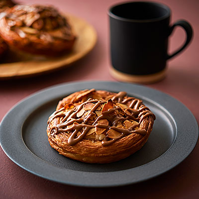 コーヒーマジパンを巻き込み、シュガーとアーモンドスライスをトッピング