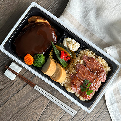 牛サガリのガーリックライス&デミグラスハンバーグ御膳