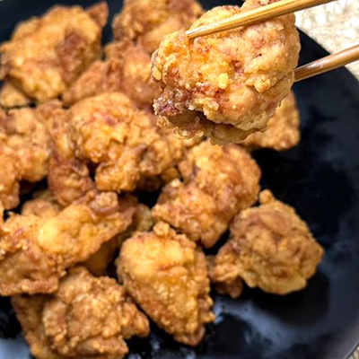 国産の名柄鶏鹿児島いいとこ鶏の新鮮なもも肉を使い国産の木桶醤油と国産生姜で味付けをした肉と醤油の美しさたっぷりの唐揚げです。