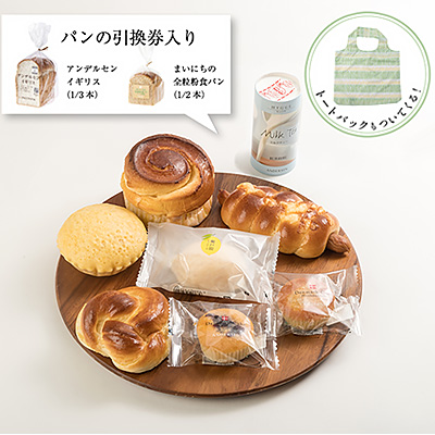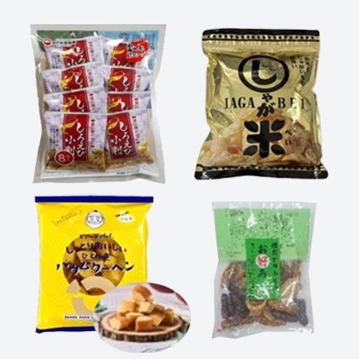〈日の出屋製菓〉しろえび小判 (8袋)、〈喜多山製菓〉じゃが米 (85g)、〈DAY TO LIFE〉ビアードパパのしっとりおいしいバウムクーヘン (18個)、〈常盤堂製菓〉播州かりんとうお好み (68g) 各1袋入りのお楽しみ袋です。