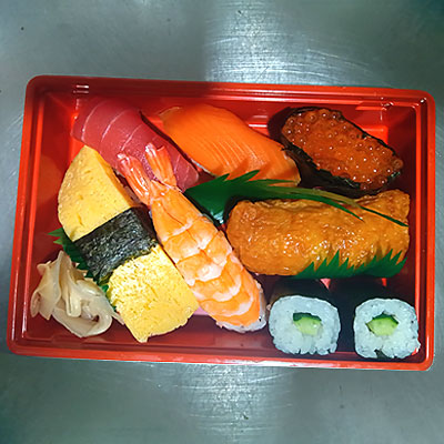 まぐろ、サーモン、えび、玉子、いくら、イナリ、カッパ巻等、人気のお鮨の詰め合わせです。