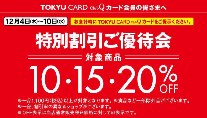 【TOKYU CARD ClubQカード会員の皆さまへ】特別割引ご優待会