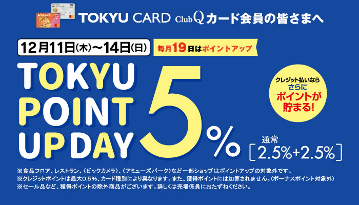 【TOKYU CARD ClubQカード会員の皆さまへ】ポイントアップ開催!