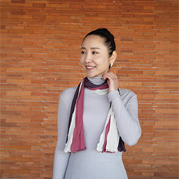 3色の生地を重ねたストールで、巻き方で表情が変わります。季節を問わずに着こなしのアクセントとして。