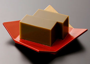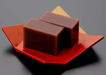 加賀棒ほうじ茶をふんだんに使用した水羊羹。香りと味わい、両方を余すことなく堪能できる、お茶の虜となる一品。
