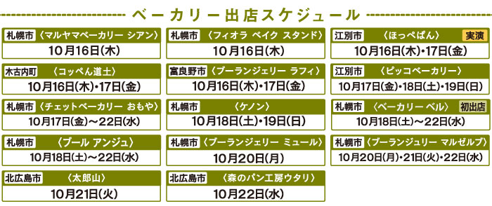 予告秋のベーカリーフェア/ハーベスター八雲販売会/王様の厚揚げ販売会