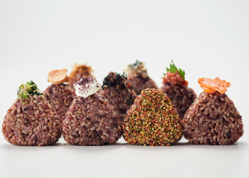 鹿児島県産の玄米と紫黒米を黄金比でブレンドし、独自製法で炊き上げ、10種類の具材でおむすびにしました