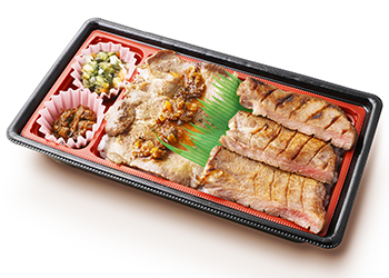 定番の厚切りの牛たんと食欲がそそる牛たんラー油が乗った2種類の利久のお弁当となっております。
