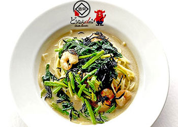 木古内産のひじきを使ったクリームパスタ。ゆずコショウがさわやかなアクセントになってます!
