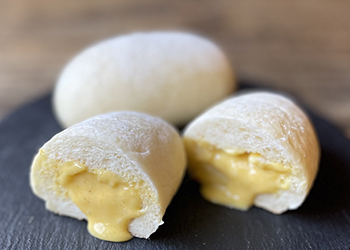 完熟マンゴーピューレを自慢のカスタードと合わせ、高加水白パンに閉じ込めました。口の中で南国の風味がとろけます。