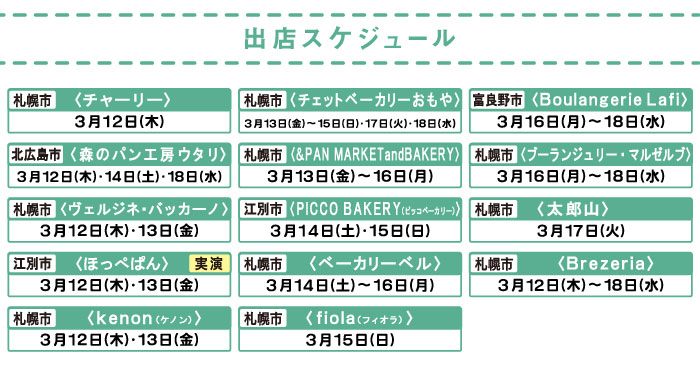 パンコーディネーターの森 まゆみ氏とフードショーバイヤーがセレクトした、人気のベーカリーが日替わりで出店!