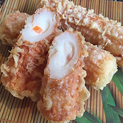 熊本県のソウルフード!食べ応えのあるちくわにポテトサラダを詰めました ■サラダちくわ(1個) 216円 [写真の品] すり身に玉ねぎを混ぜ、パン粉をつけて揚げた人気商品です。 ■オランダ揚げ(1個) 301円 ■辛子れんこん(1本) 1,301円 |