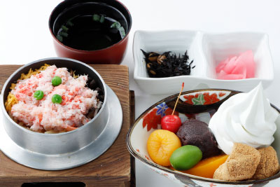 小さいかに釜めしとクリームあんみつのセット