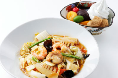 五目あんかけ焼きそば、クリームあんみつ