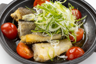 氷下魚(コマイ)、ニンニク、ミニトマト、ねぎ、オリーブオイル