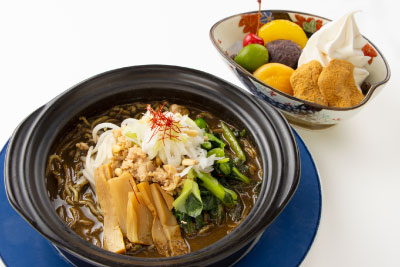 黒ごま入りのうま辛の担担麺と人気のクリームあんみつのお得なセットです。お食事もスイーツも楽しみたい方におすすめです。ぜひご堪能ください。