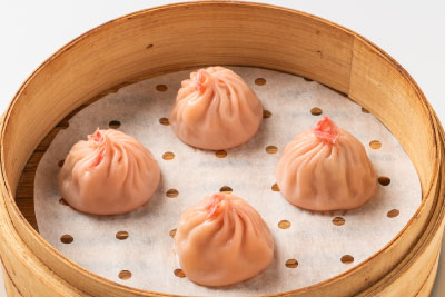 真鯛とスープと身、桜えびをふんだんに使用した香り高い小籠包です。淡い桜色が春らしい見た目も華やかな一品です。この機会にぜひご賞味ください。