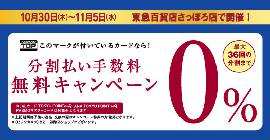 ◆さっぽろ東急百貨店にて分割払い(3回払い以上)ご利用で分割払い手数料が無料!