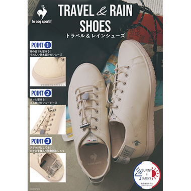 防水設計のレインシューズなら天候を気にせずに、旅行を楽しむことができます。旅先での天候不安に対応するのはもちろん、屋外でのBBQやキャンプ、車内・機内履きとしてもおススメの1足です。