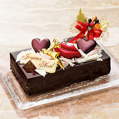チョコレート尽くしのシックなクリスマスケーキは、ご夫婦やカップルにぴったりの一台。ビターな味わいで男性の方も召し上がりやすく、ワインやウイスキー、ブランデーなど