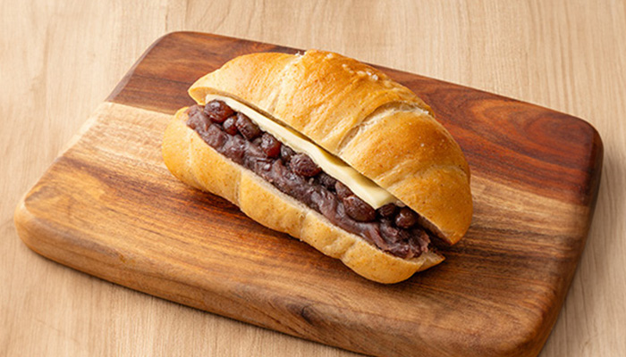 「塩と発酵バターのパン」に、北海道産小豆の粒あんと大納言かのこ、バターをはさみました。