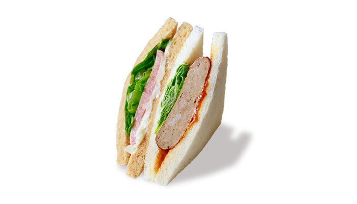 ボリュームたっぷりのハンバーグとリオナソーセージを一度に味わえる、肉好き必見の贅沢ペアサンド。