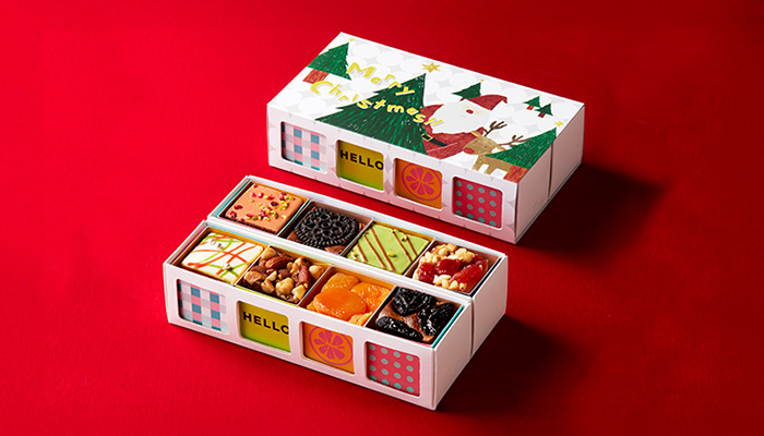 クリスマス限定パッケージが新登場!!上質な素材を使用し、手焼きにこだわった贅沢なパウンドケーキ8種アソートです。