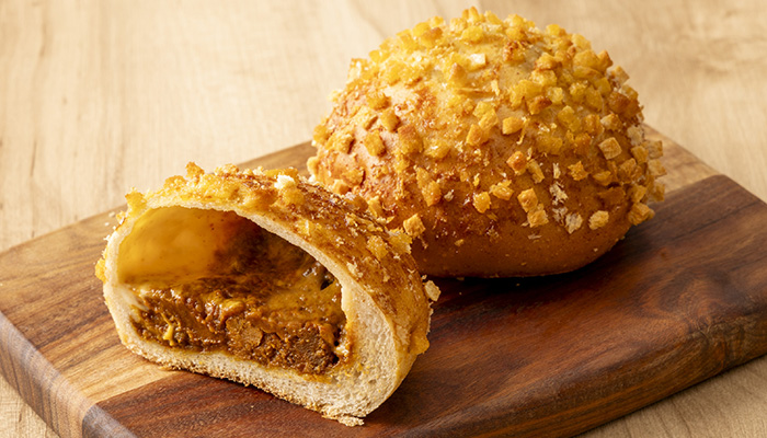石臼挽きライ麦粉を使用した生地に、チーズを混ぜたトマトベースのスパイスカレーを包んだ、焼きカレーパンです。