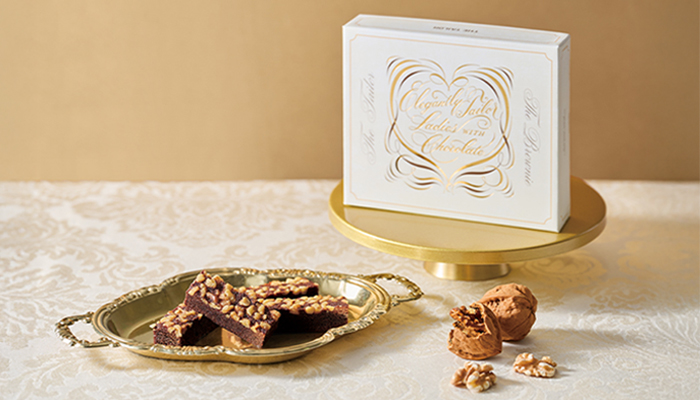 チョコレートの豊かな香りと、カカオの奥深い味わいを生かしたブラウニーです。しっとりとした生地のなめらかな口どけと、くるみの香ばしい食感の調和をお楽しみください。