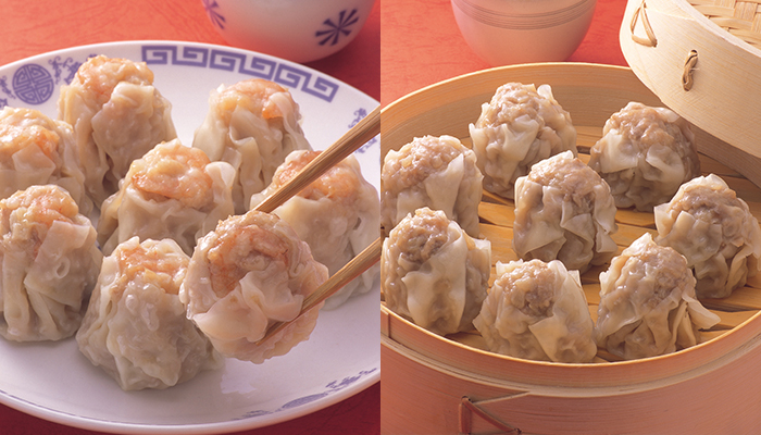 「和豚もちぶた」の圧倒的な肉粒感と新鮮な玉ねぎの旨みあふれる「肉シューマイ」、プリップリの海老をふんだんに練りこんだ「エビシューマイ」。8個入りをそれぞれ1パックずつお買い上げいただくと、「肉シューマイ」を1個増量いたします。